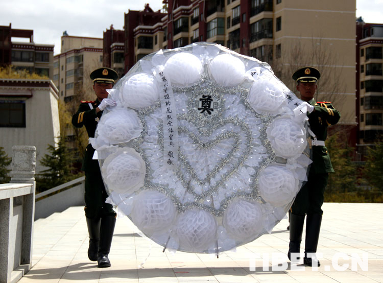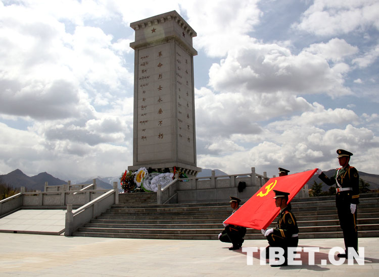 圖為西藏公安邊防總隊(duì)向先烈敬獻(xiàn)花圈
