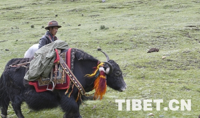 圖為十一世班禪騎著牦牛漫步牧場。攝影:王淑