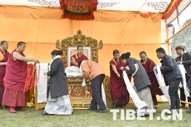 當?shù)匦沤倘罕娐犝f十一世班禪要來夏季牧場放牧點,紛紛趕著牦牛和馬在此等候,希望能瞻禮到大師的尊榮,為自己帶來賜福和好運。