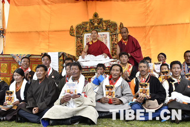 除了騎馬和騎牦牛,十一世班禪更心懷蒼生。從馬上下來后,十一世班禪為早已等候在此的信教群眾摸頂賜福。信教群眾接受了十一世班禪的摸頂賜福之后,還得到了十一世班禪的畫像、像章以及紅色金剛結(jié)。(中國西藏網(wǎng) 記者/王淑)
