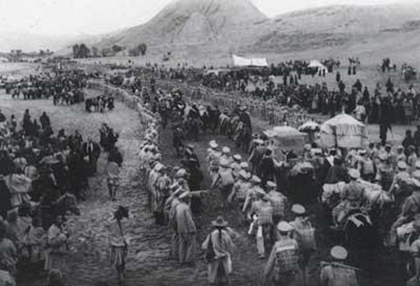 圖為十世班禪一行抵達(dá)日喀則時(shí),等候歡迎的市郊民眾達(dá)六萬多人,許多僧俗百姓在此等了一個(gè)多月,見到離開西藏30多年的班禪喇嘛,許多信眾痛哭流涕,場面十分感人。李九齡 攝 圖片來源:《中國西藏(中文版)》2011年第03期。