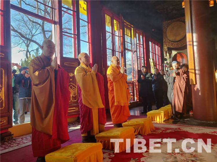 中國西藏網(wǎng)訊 古剎肅穆,佛閣莊嚴;法號齊鳴,鼓罄聲聲。1月28日上午9時,北京西黃寺、廣濟寺、雍和宮內(nèi)經(jīng)幡獵獵、桑煙繚繞、僧眾云集,隆重舉行紀念十世班禪大師圓寂30周年法會,深切緬懷偉大的愛國主義者、著名的國務(wù)活動家、中國共產(chǎn)黨的忠誠朋友、中國藏傳佛教的杰出領(lǐng)袖——十世班禪額爾德尼?確吉堅贊。