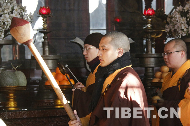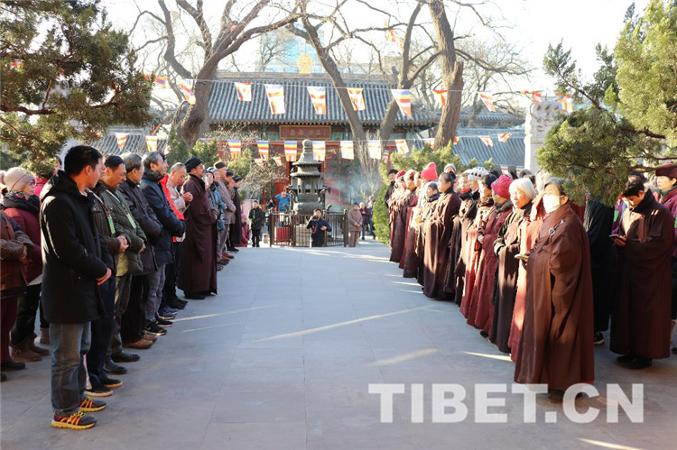 中國西藏網(wǎng)訊 今年適逢中國佛教協(xié)會名譽會長十世班禪大師圓寂30周年,1月28日上午9時,中國佛教協(xié)會及在京直屬寺院法師、工作人員、首都善信居士齊聚北京廣濟寺,隆重舉行紀(jì)念十世班禪大師圓寂30周年法會,深切緬懷十世班禪大師。法會禮請中國佛教協(xié)會演覺副會長、宗性副會長、祜巴等傣副會長主法,宏度副秘書長主持紀(jì)念儀式。三位法師拈香主法,帶領(lǐng)僧眾莊重誦經(jīng),圓滿完成法會儀軌。