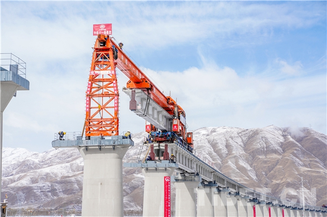 杰德秀Ⅰ號(hào)特大橋位于西藏山南市貢嘎縣杰德秀古鎮(zhèn)旁,是拉林鐵路首座聲屏障特大橋,該橋設(shè)計(jì)全長(zhǎng)1255米,共需架設(shè)38孔T梁,其中聲屏障梁18孔。