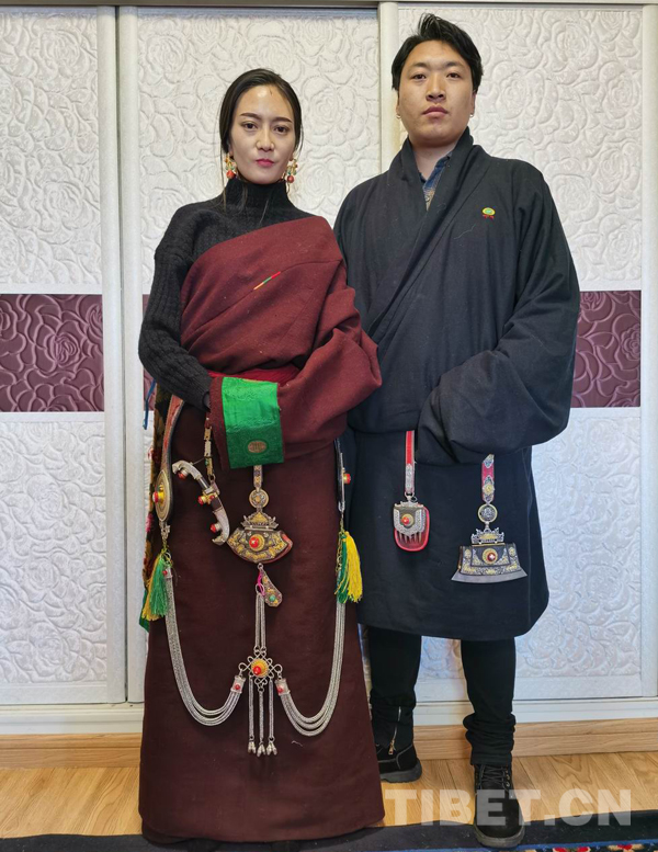 索南旦周最小的女兒叫梅朵,今年23歲,“梅朵”漢語意為“花朵”,她和她的名字一樣漂亮。她是索南旦周家里識文斷字的人。她的老公尕瑪才丁人高馬大,是典型的康巴漢子,他電大畢業(yè)后自主創(chuàng)業(yè),選擇靠祖?zhèn)鞯慕疸y首飾、佛像制造安身立命,在結(jié)古地區(qū)小有名氣。他打制的金銀首飾,精工細(xì)作,一絲不茍,真材實料,信譽度很好。他們主要接廠家和散戶訂制。梅朵兩口子不善言語,而他倆一帥一美,藏裝上佩戴各式自己打制的金銀裝飾品,是最好的語言和廣告。(中國西藏網(wǎng) 通訊員/才仁當(dāng)智)