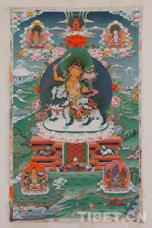 走進(jìn)曲扎的家,客廳一面白墻上并排掛著的四幅唐卡格外醒目,隱藏于作品背后的祖孫四代跨越一個(gè)多世紀(jì)的接續(xù)傳承,從他口中被娓娓道來。