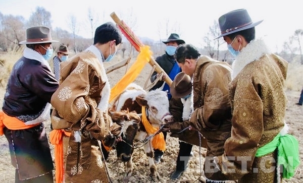 春耕節(jié)是貴德縣農(nóng)區(qū)祈愿豐收的重要節(jié)日,每到這個(gè)節(jié)日,村里男女老少身著節(jié)日盛裝,舉著“切瑪盒”、青稞酒聚集在田間地頭,一起歌舞、煨桑、祈禱豐收。