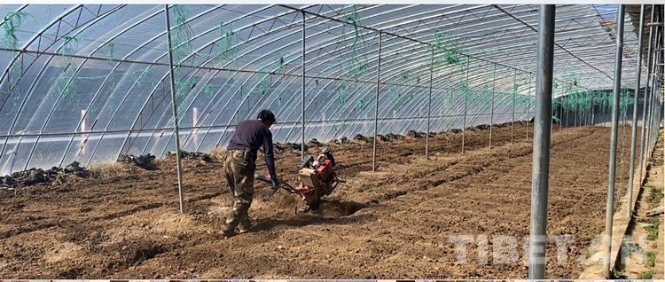 中國西藏網訊 “噠、噠……”2月27日,在四川省甘孜藏族自治州理塘縣濯桑現代農業(yè)園區(qū)的康藏陽光種植基地,濯桑鄉(xiāng)漢戈村村民降央開著手扶拖拉機在蔬菜大棚里耕地。