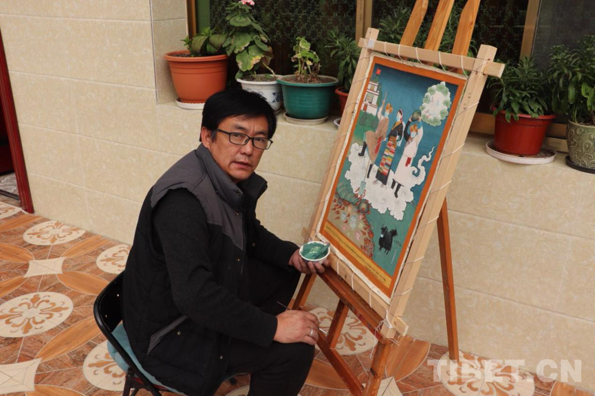 家住在西藏自治區(qū)堆龍德慶區(qū)乃瓊村的旦巴云丹是一名唐卡畫師。他師從國(guó)家級(jí)非遺傳承人、勉唐派唐卡大師丹巴繞旦,如今,已繪制唐卡30余年。新冠肺炎疫情發(fā)生以來,旦巴云丹從手機(jī)、電視等多個(gè)渠道密切關(guān)注疫情情況,這也讓他謀生出繪制戰(zhàn)“疫”主題唐卡的想法。