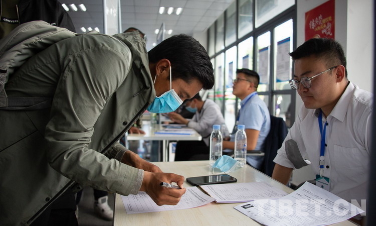 圖為旦增頓珠在填寫求職登記表 攝影:趙耀