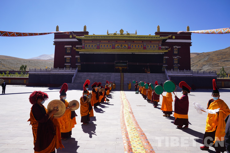 圖為薩迦寺僧眾向十一世班禪敬獻曼札 攝影:王淑