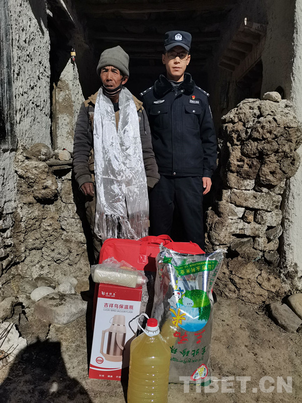 中國西藏網(wǎng)訊 “人生最美夕陽紅,世間最美老年花?!弊鹄?、敬老、愛老、助老是中華民族引以為傲的傳統(tǒng)美德。在元旦和2021年中國人民警察節(jié)來臨之際,西藏自治區(qū)拉孜縣公安局查務(wù)公安一級檢查站民警達(dá)瓦次仁抽出休息時間,自掏腰包看望慰問彭措林鄉(xiāng)那嘎村、芒普鄉(xiāng)普村、熱薩鄉(xiāng)卡西村、曲瑪鄉(xiāng)曲瑪村等4名孤寡老人。
