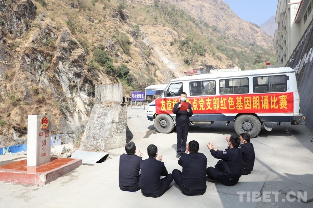 中國西藏網(wǎng)訊 為提升完善四強黨支部建設(shè),豐富一線執(zhí)勤民警文化生活,1月27日,西藏自治區(qū)聶拉木出入境邊防檢查站友誼橋執(zhí)勤點在53號界碑旁舉行紅色基因朗誦比賽,為中國共產(chǎn)黨百年華誕獻禮。