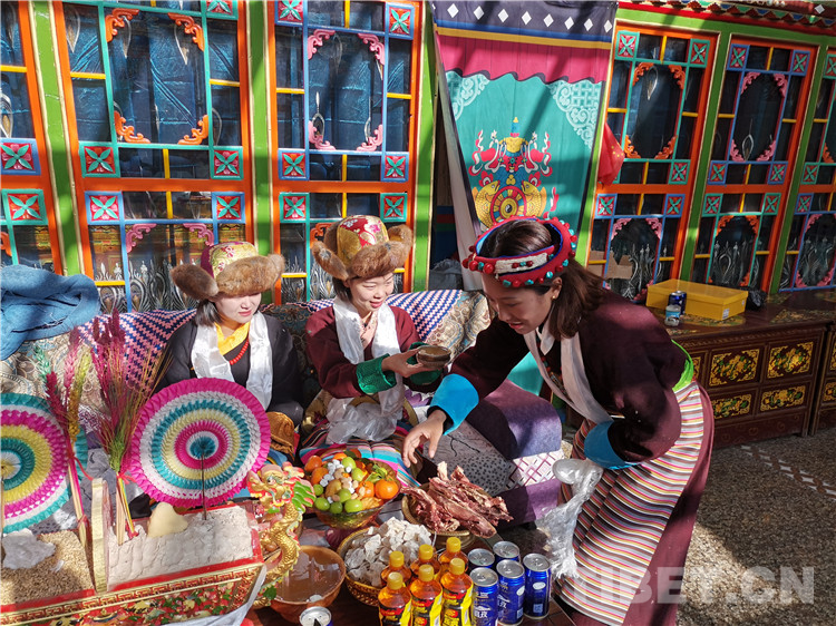 在西嘎拉村普瓊家,一進門,普瓊的女兒就為新到的“貴客”獻上潔白的哈達(dá),并祝福他們藏歷新年快樂。