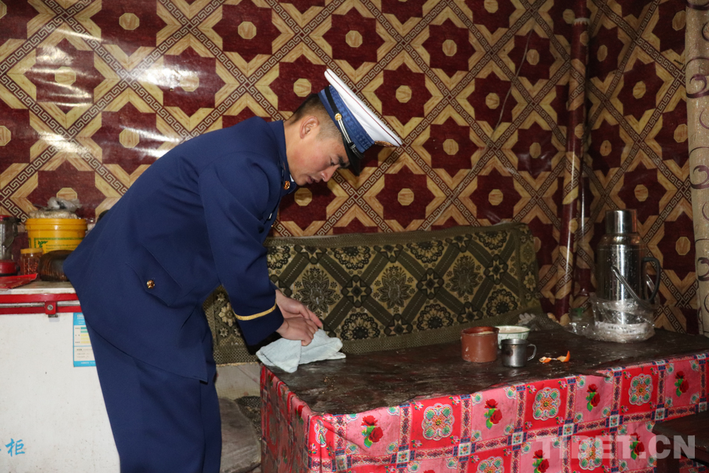 伴隨著冬日里溫暖的陽(yáng)光,中隊(duì)指戰(zhàn)員代表帶著慰問品和節(jié)日的祝福來(lái)到了卓給阿媽家中,阿媽高興地迎接大家。指戰(zhàn)員們?yōu)榘審堎N對(duì)聯(lián)、整理衣物、收拾衛(wèi)生,給阿媽測(cè)量血壓,與阿媽拉家常,小屋沉浸在溫馨祥和的氛圍中。阿媽拉著指戰(zhàn)員的手說(shuō)道:“謝謝你們經(jīng)常來(lái)看我,我雖然沒有兒女,有你們的掛念,心里很滿足。”臨走時(shí),指戰(zhàn)員再三叮囑阿媽有困難一定要及時(shí)聯(lián)系,她的“兒子”會(huì)經(jīng)常來(lái)看望。