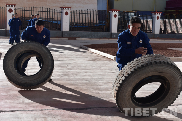 圖為左貢縣森林消防中隊駐芒康分隊指戰(zhàn)員進行體能訓練