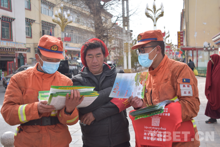 圖為左貢縣森林消防中隊駐芒康分隊指戰(zhàn)員宣傳防火知識