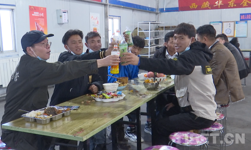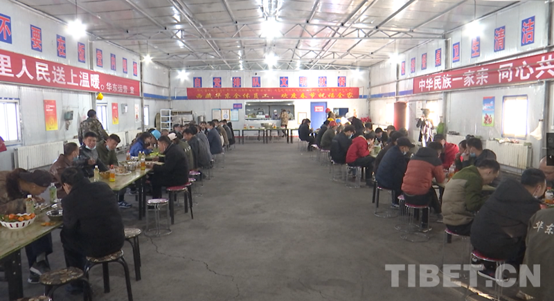 圖為阿里地區(qū)熱電聯(lián)廠員工在企業(yè)食堂集體吃年夜飯 攝影:王佳豪