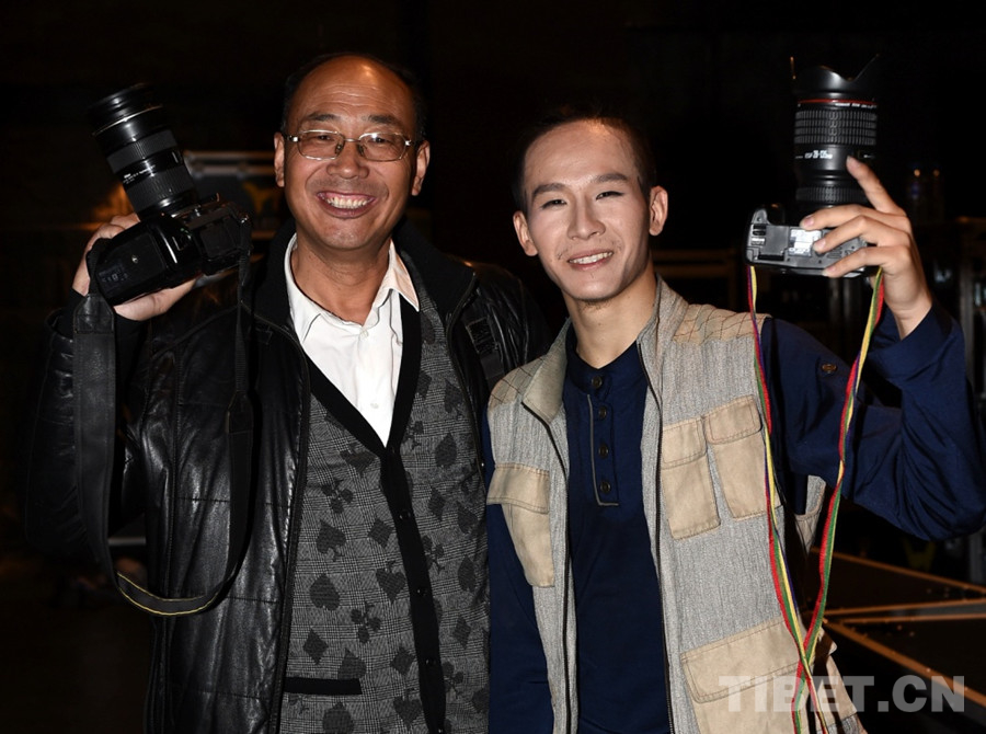 圖為唐召明(左)與《圓夢(mèng)》歌舞劇策劃人朱強(qiáng)(右)在電力大學(xué)劇場(chǎng)演出結(jié)束后合影留念(唐召明2015年9月28日攝)