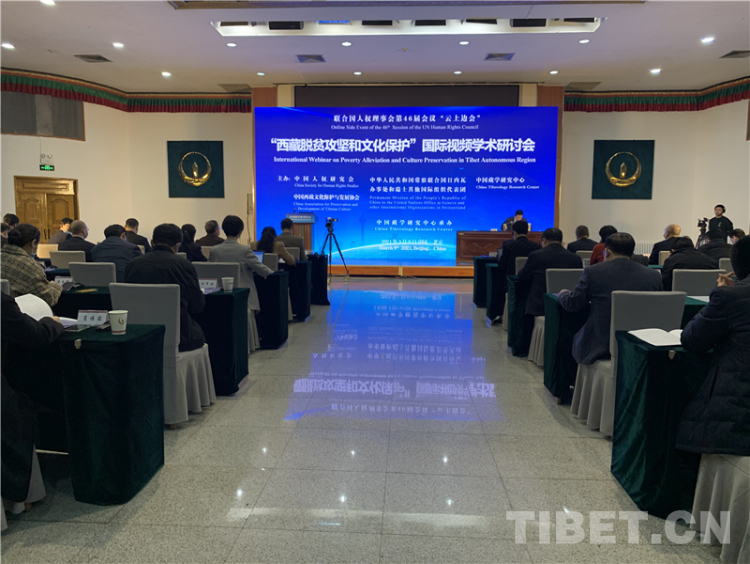 中國西藏網(wǎng)訊 3月9日,聯(lián)合國人權(quán)理事會第46屆會議“西藏脫貧攻堅(jiān)和文化保護(hù)”云上邊會采用線上線下結(jié)合方式舉行。線下主會場設(shè)在位于北京的中國藏學(xué)研究中心。來自境內(nèi)外有關(guān)減貧和文化保護(hù)領(lǐng)域的專家學(xué)者參加了研討。