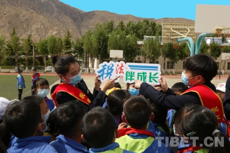 “稅官們用淺顯易懂的藏漢雙語向同學(xué)們講解稅收的起源等稅收知識(shí),不僅豐富了孩子們的課外知識(shí),還能幫助他們從小增強(qiáng)納稅意識(shí)。剛才還有學(xué)生跑來告訴我,將來也要像叔叔們一樣,為祖國收稅!”年級(jí)主任巴桑笑著告訴前來為孩子上課的稅務(wù)干部們。
