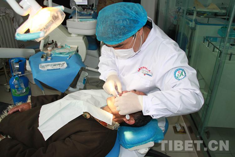 圖為援藏專家給患者做檢查