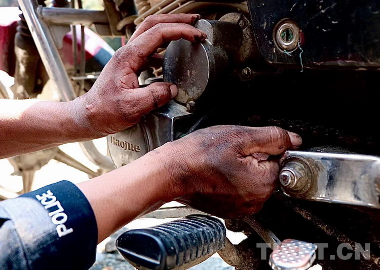 如果你經過日喀則邊境管理支隊陳塘邊境派出所頓樟執(zhí)勤點,你有可能會在執(zhí)勤點旁邊的空地上看見一位不停揮舞著扳手,雙手沾滿機油的民警正圍著摩托車忙碌著。他叫王昱隆,是陳塘邊境派出所的一名民警,年初被分配到頓樟執(zhí)勤點,到現(xiàn)在他已經義務幫助不少地過往行人維修摩托車了。