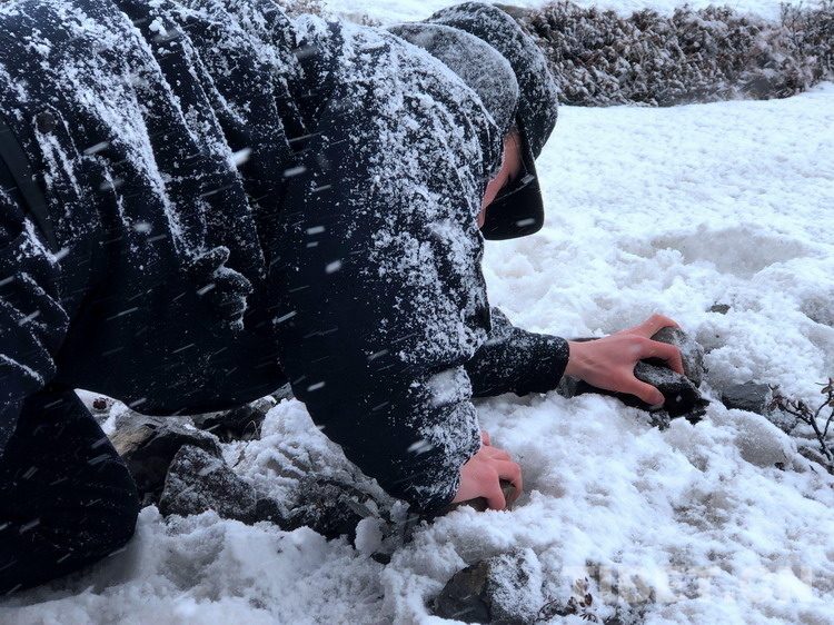 西藏日喀則邊境管理支隊貢當邊境派出所拉青拉的執(zhí)勤民警開始一天的巡邏工作。巡邏點位要穿越較厚的積雪區(qū),攀爬被冰雪覆蓋的陡坡,一路危險重重,為了不增加負擔,除了必要的警用裝備,大家都是最大限度的輕裝簡行,連干糧和水都是定量攜帶、定時食用。巡邏車碾冰軋雪,在茫茫雪海留下一道清晰的車轍,一路荒無人煙,積雪越來越厚。在距離界樁不到兩百米的地方,巡邏車被數(shù)十厘米厚的積雪攔住去路,大家只好下車徒步前進,由于風大路險,民警們只能彎著腰手腳并用匍匐著前行,隊伍里只能聽到沉重的喘息聲和腳踏積雪咯吱聲。一百多米的路走了二十分鐘,最終到達界樁,大家來不及休整,立刻展開觀察、警戒、檢跡記錄。積雪覆蓋的界樁旁,巡邏民警整齊列隊,面向國旗,緊握右拳,朝著國旗莊嚴敬禮:“邊境有我,請祖國放心!”