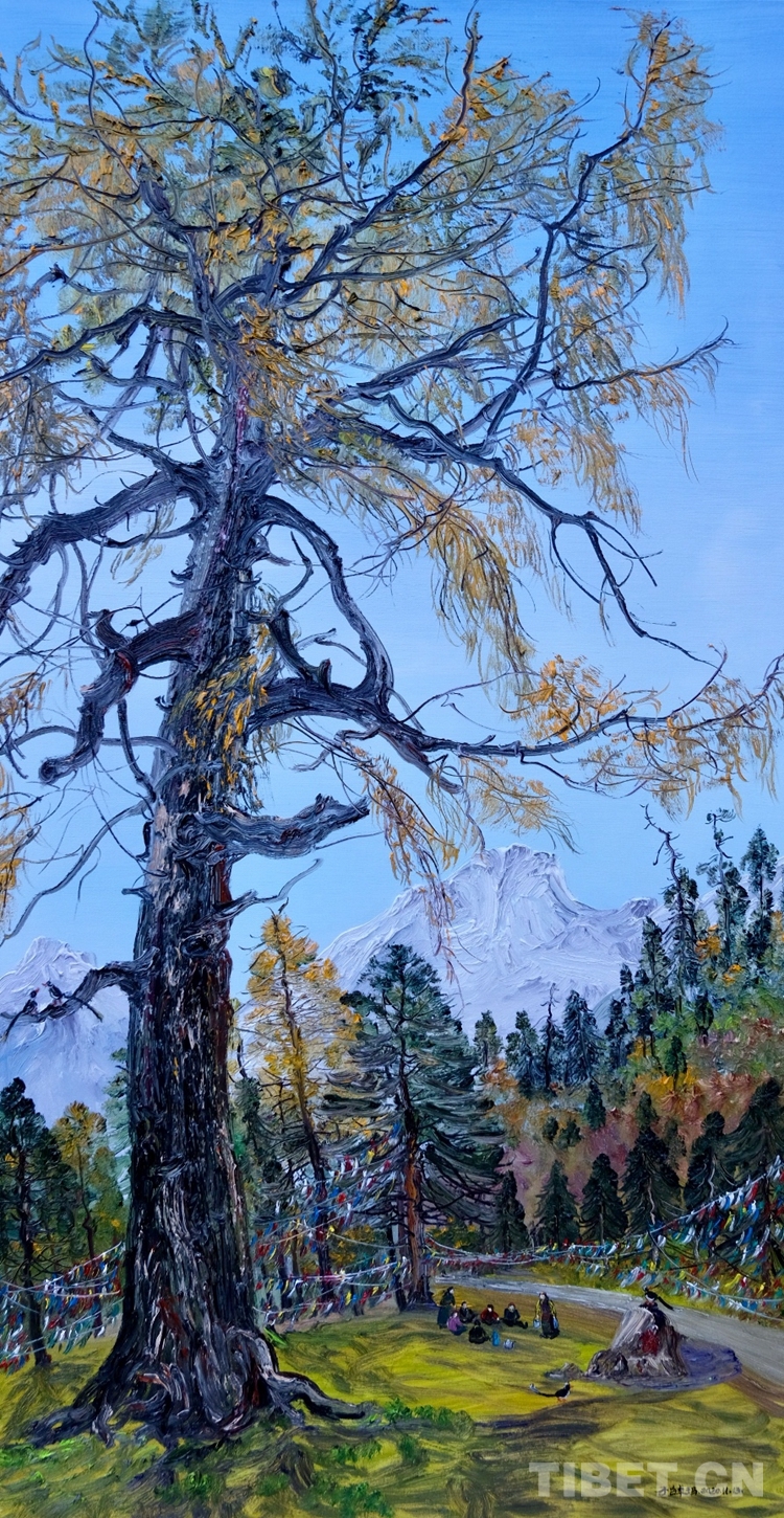 “展覽的油畫創(chuàng)作大多是在寫生現(xiàn)場完成的,她的藝術(shù)風(fēng)格也清新生動(dòng)。她以自己的寫生作品,令觀眾共享融入自然的至純大美,這是一種平易近人的審美方式。”國家一級(jí)美術(shù)師余有心評(píng)價(jià)說,子白特別善于畫樹,她的一幅幅佳作就是這些千年古樹的肖像,借審美而參悟自然生態(tài)的奧妙,帶觀眾領(lǐng)會(huì)高原生態(tài)文明之真諦。
