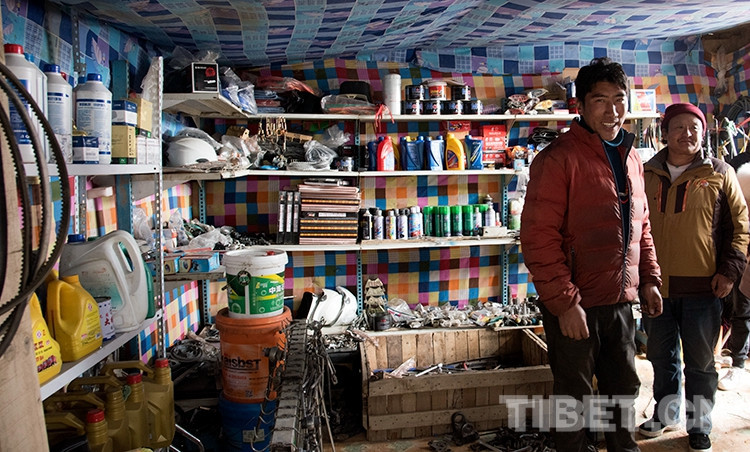 圖為嘎瑪(左)在他的汽車修理店里 攝影:王媛媛