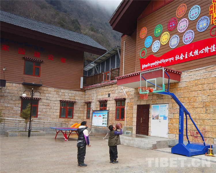 圖為在玉麥鄉(xiāng)小學(xué)籃球場打球的小朋友 攝影:王茜