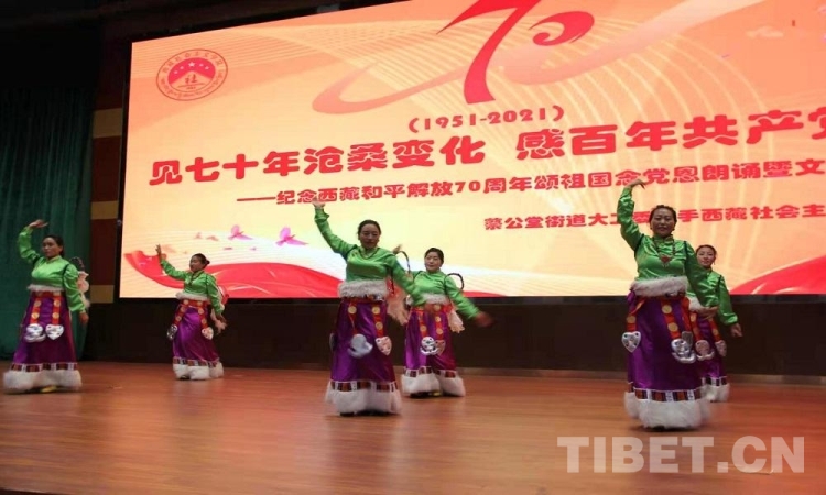 5月23日是西藏和平解放70 周年紀(jì)念日。23日上午,由西藏自治區(qū)拉薩市蔡公堂街道和西藏社會(huì)主義學(xué)院共同舉辦的紀(jì)念西藏和平解放70周年頌祖國、念黨恩朗誦暨文藝表演活動(dòng)舉行?,F(xiàn)場鮮花嬌艷,燈光炫目,旋律悠揚(yáng),歌聲嘹亮。
