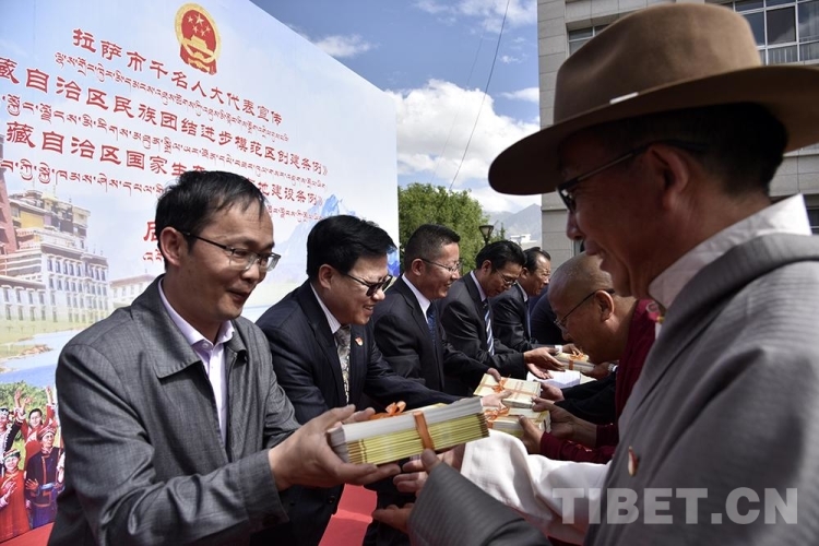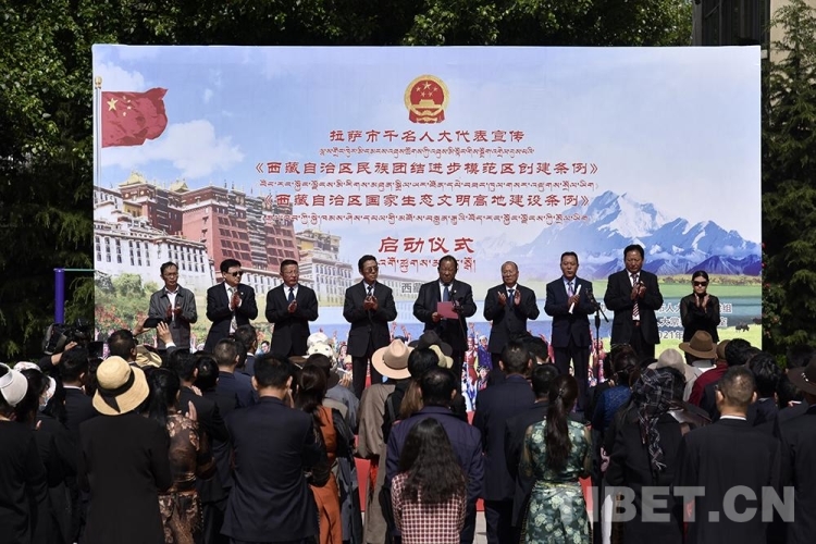 中國西藏網(wǎng)訊 6月9日上午,拉薩市千名人大代表(包括自治區(qū)、市、縣、鄉(xiāng)四級人大代表)宣傳《西藏自治區(qū)民族團結(jié)進步模范區(qū)創(chuàng)建條例》和《西藏自治區(qū)國家生態(tài)文明高地建設條例》(以下簡稱兩個《條例》)工作正式啟動。