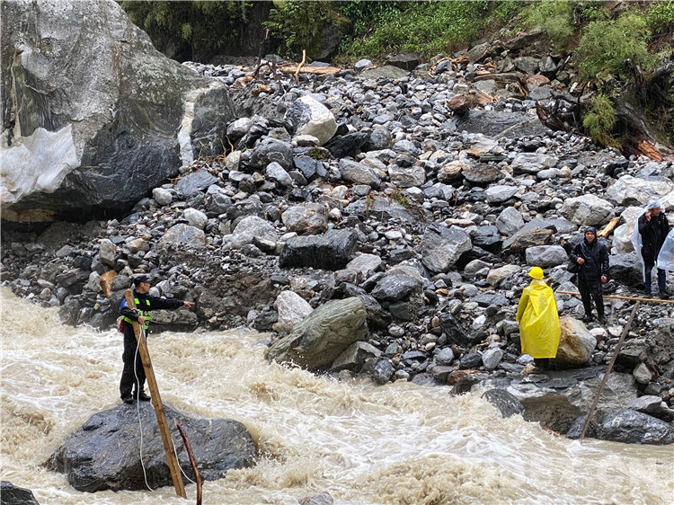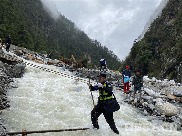 在經(jīng)過勘察后,派出所民警發(fā)現(xiàn)左布德至國防公路四號橋位置發(fā)生大面積山體滑坡10余處,救援隊研判搜救風(fēng)險后,通過搭橋、吊繩、分批護(hù)送等方式打通了長達(dá)10公里的“生命通道”。