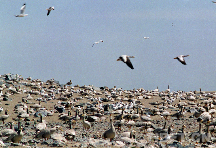 這是俄亞爾錯(cuò)鳥島上棲息的斑頭雁和魚鷗(唐召明2009年攝)