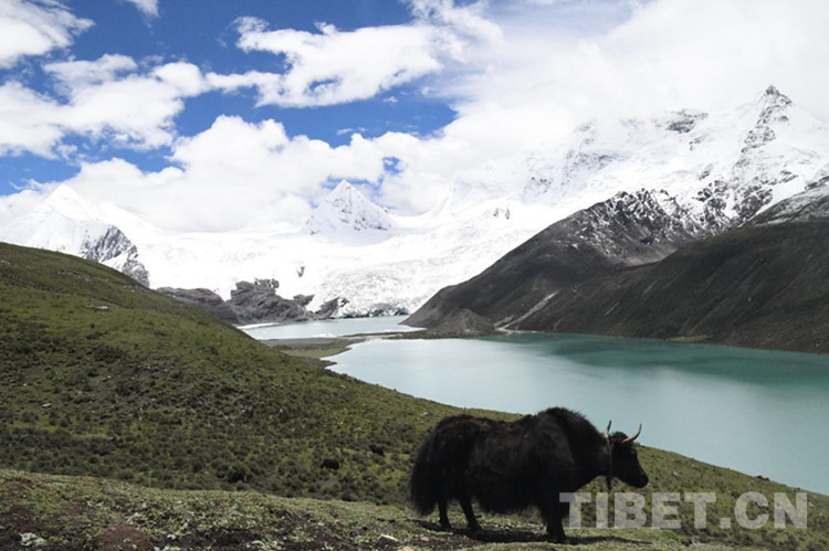 圖為薩普冰川腳下,牦牛在湖邊悠然自在 攝影:索南多杰