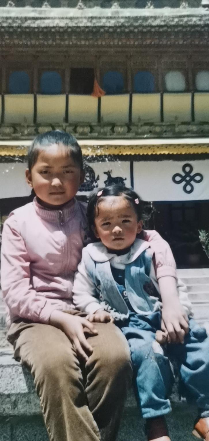 三歲的央吉和姐姐在拉薩羅布林卡合影 (圖片由央吉本人提供)