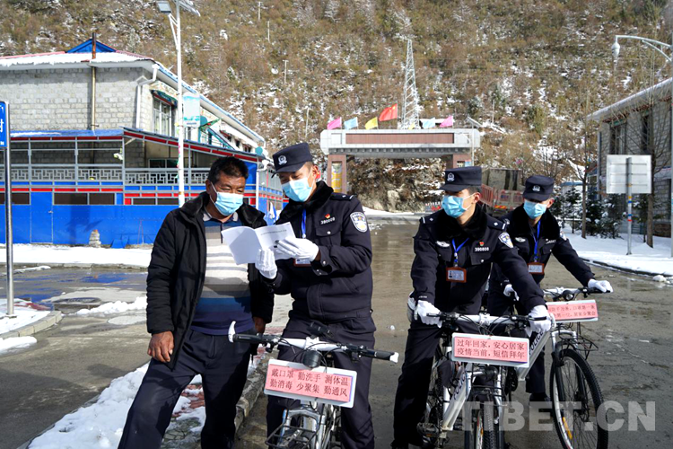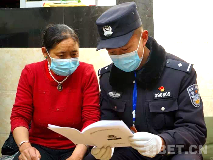 圖為洛桑旦增向轄區(qū)群眾宣傳相關(guān)法律規(guī)定和注意事項(xiàng)