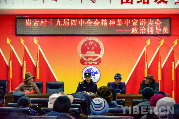 圖為洛桑旦增向轄區(qū)群眾宣講十九屆四中全會(huì)精神