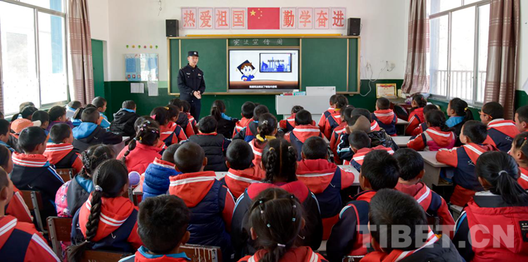 圖為洛桑旦增給學(xué)生宣講普法知識