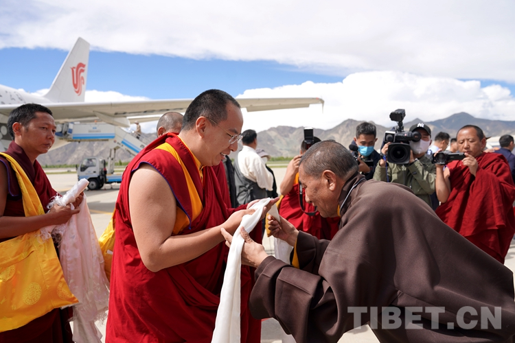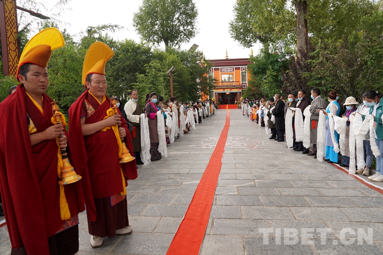 隨后,班禪乘車抵達位于拉薩的班禪行宮雪林多吉頗章。細雨綿綿的拉薩城,清風習習涼爽宜人。西藏自治區(qū)黨委常務副書記、自治區(qū)政協黨組書記莊嚴與十九屆中央候補委員,西藏自治區(qū)黨委副書記、拉薩市委書記嚴金海等西藏自治區(qū)相關領導在此迎候。拉薩各大寺廟的僧眾代表和信教群眾代表手捧潔白的哈達在微微細雨中翹首以盼班禪的到來。