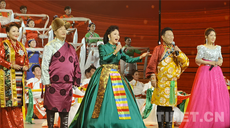 “來(lái)了!來(lái)了!吉祥的日子來(lái)了!升起了!升起了!幸福的太陽(yáng)升起來(lái)了!”“我們雙手捧起圣潔的銀碗!我們雙手托起吉祥的哈達(dá)!我們唱起最美的贊歌!感恩黨,感恩祖國(guó),感恩幸福生活!”文藝演出在大型歌舞表演《扎西德勒》中拉開(kāi)序幕。