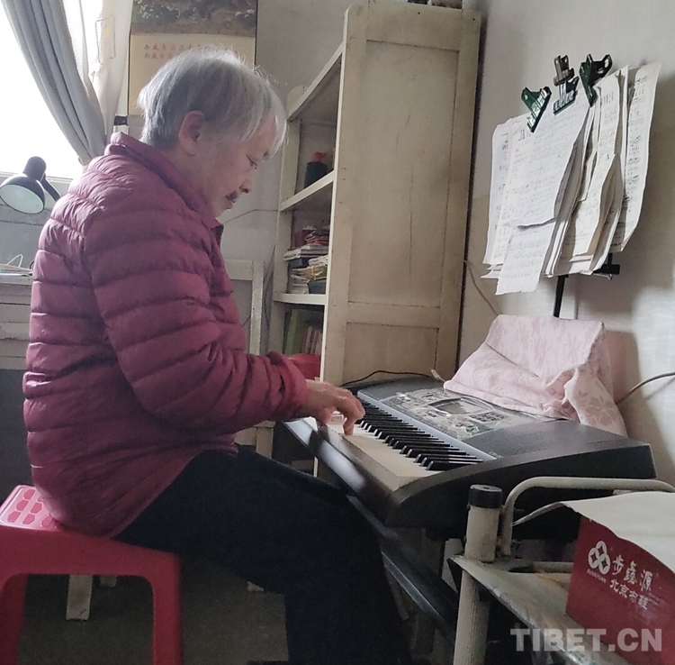 鄧親和,四川省樂山市犍為縣人,出生于1931年,十八軍52師文工隊(duì)?wèi)?zhàn)士。1950年,鄧親和19歲,正值高三,成績優(yōu)異的她不顧家人的勸阻,毅然放棄了繼續(xù)讀書的機(jī)會(huì),踏上了解放西藏的征途,從此在雪域高原上留下了人生最寶貴的青春足跡。初見鄧?yán)蠋煟H切和藹的樣子,給我留下深刻的印象。老人雖然退休多年,但是她的生活仍然格外豐富。據(jù)老人講,她的作息時(shí)間比較規(guī)律,堅(jiān)持做八段錦鍛煉身體,自己做家務(wù),空閑時(shí)間還會(huì)看書看報(bào)、提筆練字,或是彈彈電子琴,唱唱歌等等,生活豐富多彩。此刻,我從她的身上看到了年輕時(shí)鄧親和的神態(tài)與風(fēng)采。回首那段崢嶸歲月,翻雪山、過草地、穿峽谷、涉冰河……面臨高山缺氧的生命危險(xiǎn),趟越急流冰河的刺骨鉆心,爬冰臥雪、忍饑耐寒,遇艱險(xiǎn)不畏其險(xiǎn),歷困難不以為難,樁樁件件好似一首首雋永的絢麗詩篇,常在她記憶里回蕩,令人難忘。