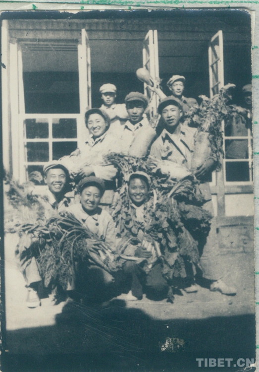 入城后,文工隊(duì)分別住在江孜城郊強(qiáng)查洞幾處民房里。初到江孜,后方給養(yǎng)一時(shí)運(yùn)不上來,蔬菜等主副食又得不到有效供給,西藏只有土豆、元根,他們還不能隨便采購。西藏工委和十八軍黨委遵照毛主席“進(jìn)軍西藏,不吃地方”的指示,提出“搞好生產(chǎn)是進(jìn)藏部隊(duì)長期的一項(xiàng)中心任務(wù)”,文工隊(duì)同分工委全體工作人員一道在帕拉開墾荒地、播種糧食。天寒地凍又缺少農(nóng)具,用鐵锨鏟鏟不動(dòng),用十字鎬挖,一鎬下去,直冒火星。同志們想方設(shè)法烤凍土,翻起一塊一塊像鐵板一樣的凍土,晾在太陽下曬,然后再一鎬一鎬的砸碎、耙平,沒有耕牛,男同志就扛起繩拉犁,女同志平地耙地。江孜海拔4000米以上,平日里都缺氧,此時(shí)再加上勞累更是頭暈?zāi)X脹,上氣不接下氣,可是他們充分發(fā)揚(yáng)“不怕苦不怕累”的精神,終于開出一片荒地、撒下種子、收獲了自己種下的糧食,做到了一部分自給,在西藏群眾中產(chǎn)生了很好的影響。文工隊(duì)還在住地附近開辟了一塊地種菜,用實(shí)際行動(dòng)徹底粉碎了西藏上層反動(dòng)集團(tuán)妄圖用糧食困住解放軍進(jìn)而餓走解放軍的美夢(mèng)。