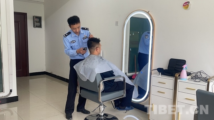 民警頓珠主動(dòng)承擔(dān)起了為戰(zhàn)友們理發(fā)的工作。理發(fā)這門手藝,是頓珠自學(xué)來的。參加工作之前,他就在老家村莊和鄉(xiāng)親們相互幫忙剪頭發(fā)。參加工作后,他就利用回家探親休假的時(shí)間學(xué)習(xí)理發(fā)技術(shù)。時(shí)間久了,他的理發(fā)技術(shù)越來越成熟,手藝也越來越好。每當(dāng)節(jié)假日、周末,大家在休息的時(shí)候,他的小理發(fā)室就會(huì)變得異常火爆,洗、剪、吹,整天都是忙忙碌碌的。漸漸地“托尼”老師——頓珠的名聲傳遍了樟木鎮(zhèn),在鎮(zhèn)里工作的建設(shè)工人也常常會(huì)慕名前來。