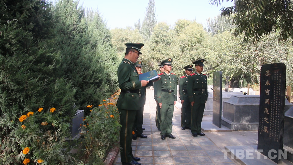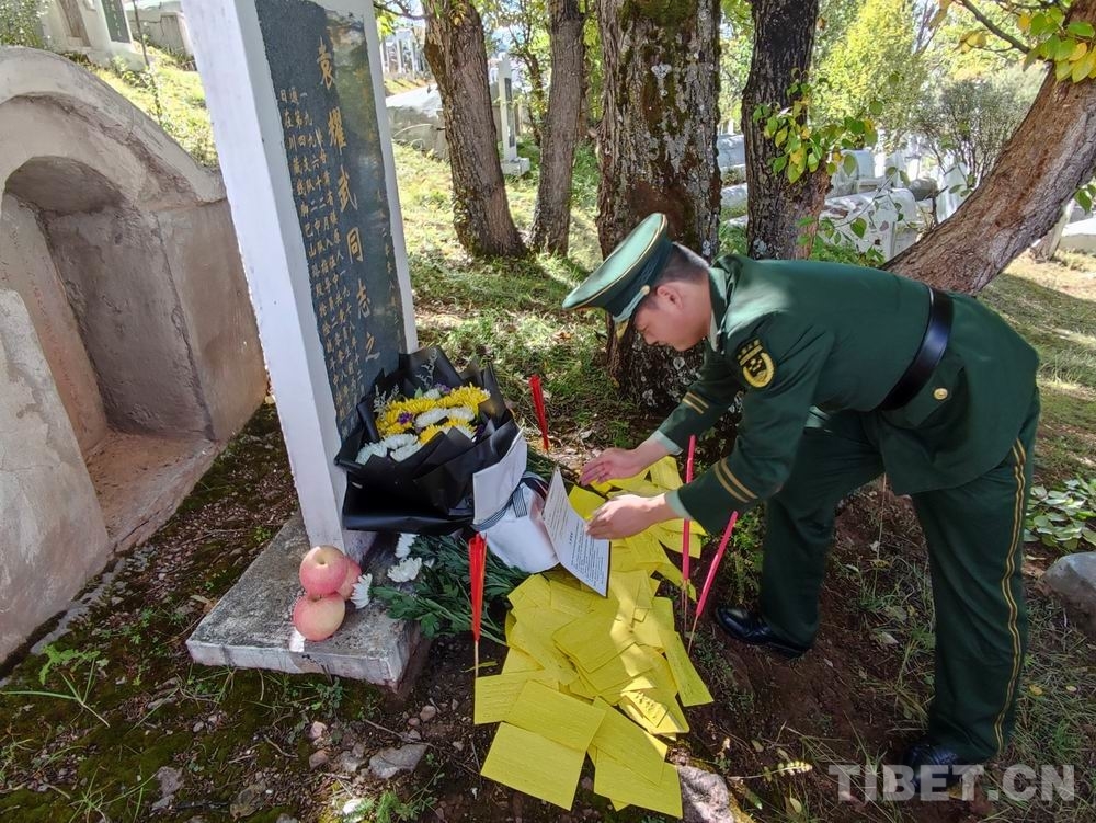 中國西藏網(wǎng)訊 “指導員,今天我?guī)е嘘牴俦鴣砜赐?,有個好消息要告訴您,您的兒子被國防科技大學錄取了,他選擇繼承您的遺志,成為一名軍人繼續(xù)為國家做貢獻……”9月30日,武警第二機動總隊某支隊中隊長張順中在烈士袁耀武墓碑前,莊嚴地宣讀了軍校錄取通知書。