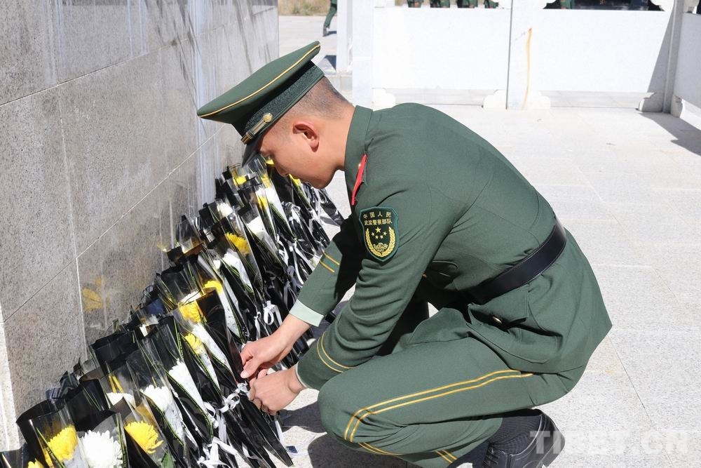 圖為武警第二機動總隊某支隊向革命烈士敬獻鮮花