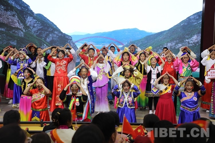 活動中,同學(xué)們用藏漢雙語傾情朗誦《石榴籽心連心,民族團(tuán)結(jié)一家親》,深情表達(dá)了對偉大祖國深沉熱烈的愛、對維護(hù)民族團(tuán)結(jié)堅定的信心和決心。山南邊境管理支隊浪卡子邊境管理大隊教導(dǎo)員索朗達(dá)杰同志通過講述邊防部隊愛邊守邊、加強(qiáng)民族團(tuán)結(jié)的故事,將無數(shù)邊防戰(zhàn)士守衛(wèi)國境線、捍衛(wèi)國家領(lǐng)土、維護(hù)民族團(tuán)結(jié)的時代縮影呈現(xiàn)給大家;舞蹈《洗衣歌》生動反映了軍民魚水深情;原雙湖縣中心小學(xué)教師、西藏自治區(qū)民族團(tuán)結(jié)先進(jìn)代表曹小花老師分享了自己在那曲雙湖縣堅守12年基礎(chǔ)教育,踐行民族團(tuán)結(jié)的感人經(jīng)歷,在坐的師生深受感動;索朗頓珠同志講述了卓嘎、央宗姐妹作為“神圣國土的守護(hù)者”堅守玉麥三人鄉(xiāng),踐行“國是中國 家是玉麥”的感人故事!在活動中,56名同學(xué)身著各民族服裝伴著手語飽含深情地演繹了《國家》,用指尖唱出對家的依賴、國的熱愛;朗誦《請黨放心,強(qiáng)國有我》鏗鏘有力的展現(xiàn)了新一代西藏團(tuán)員青年在黨的領(lǐng)導(dǎo)下,加強(qiáng)民族團(tuán)結(jié)、建設(shè)美麗西藏的青春誓言!最后,活動在全體團(tuán)員青年重溫入團(tuán)誓詞中結(jié)束。