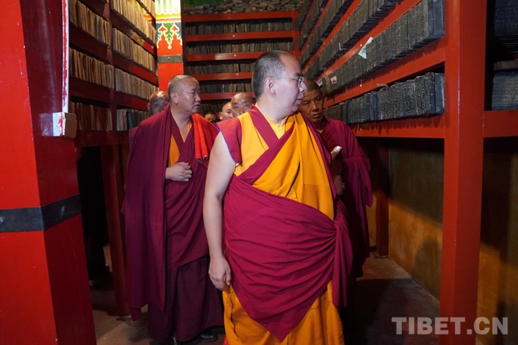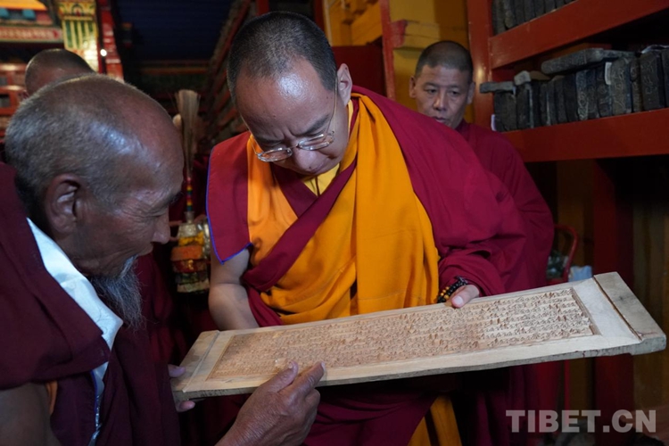 隨后班禪參觀了寺院的印經(jīng)院,納塘寺印經(jīng)院被譽為“西藏文庫”。曾刻制印刷大量的藏文經(jīng)典著作。其中包括大藏經(jīng)《甘珠爾》108部、《丹珠爾》225部,都是完整的精刻版,除文字外還有套色版畫。此套印版的首次印刷本現(xiàn)珍藏于扎什倫布寺和布達拉宮。