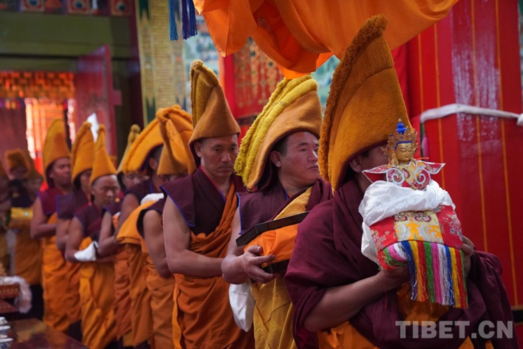 圖為班禪在增寺拋灑青稞、祈愿豐收 攝影:王淑